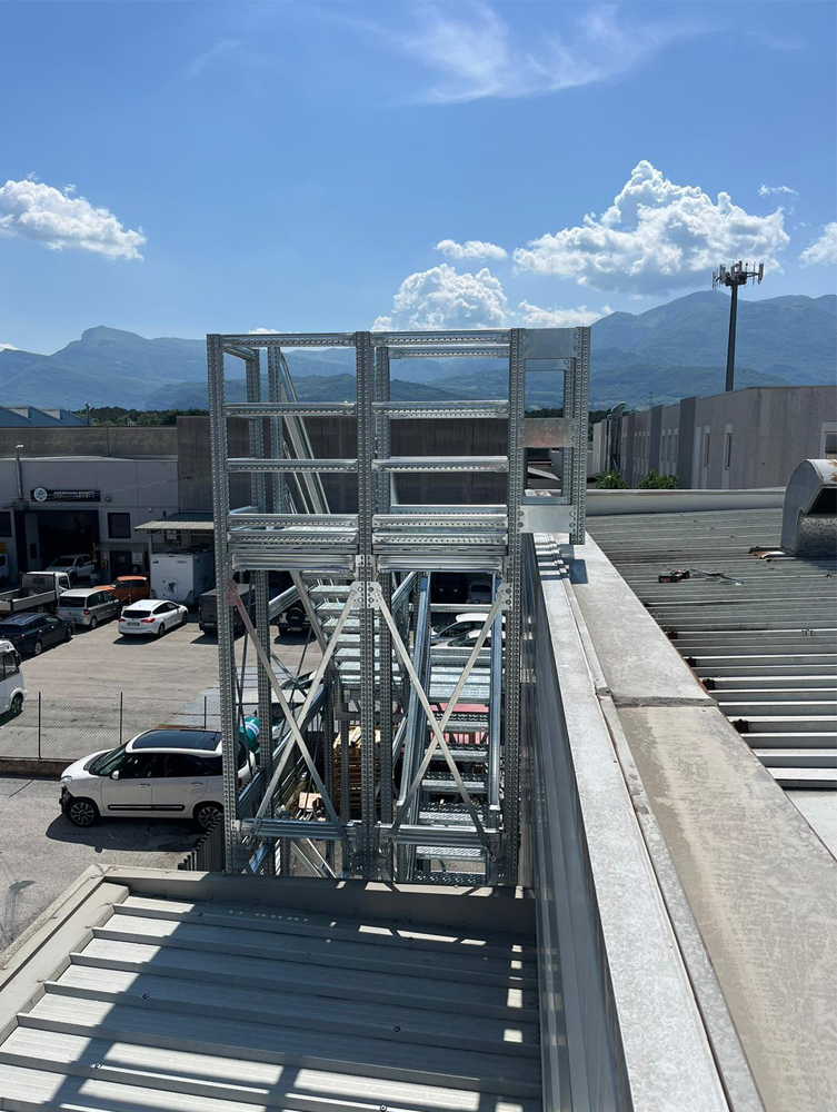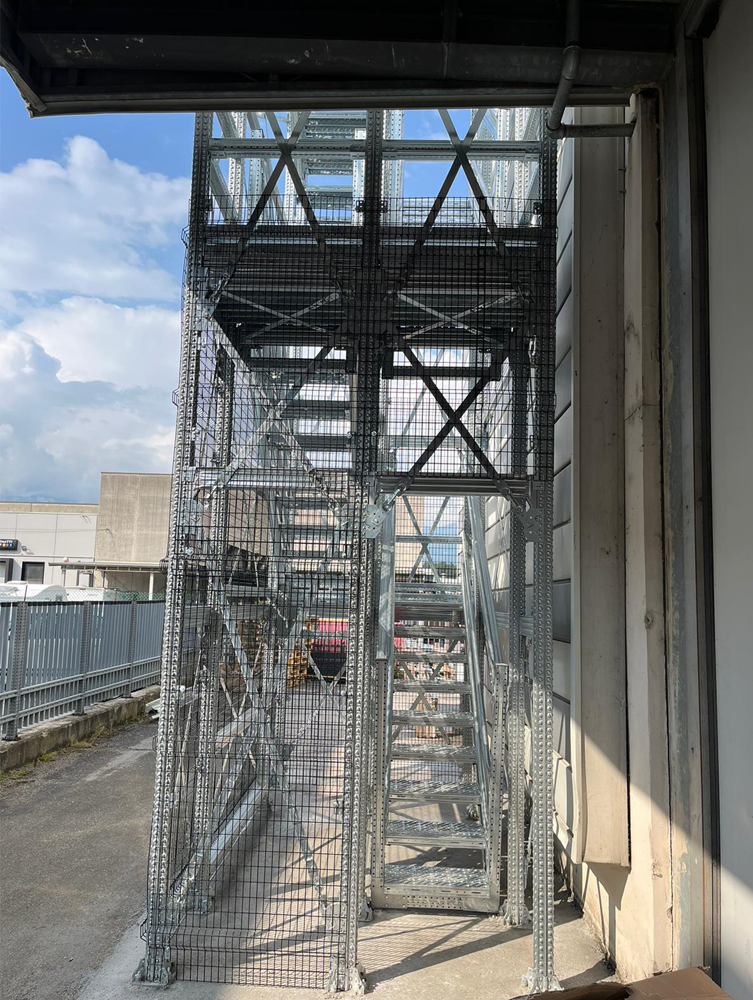 Le scale di sicurezza in metallo zincato TS  sono una scelta ideale per la logistica industriale e i capannoni, offrendo resistenza alla corrosione, robustezza, durabilità e sicurezza per gli operatori.